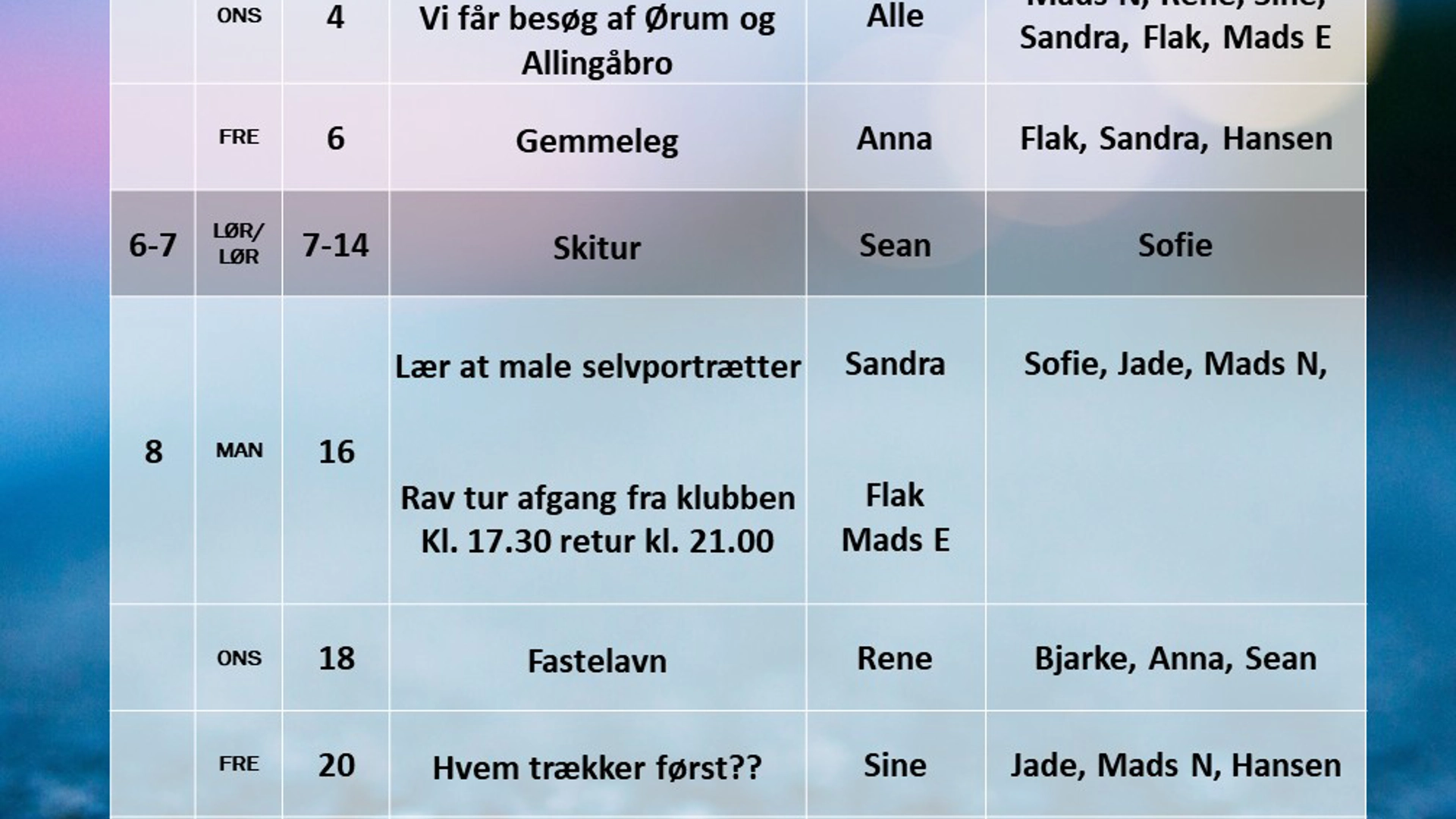 Her har du mulighed for at tilmelde dig ungdomsklubben, din tilmelding gælder til alle 3 Ungdomsklubber.