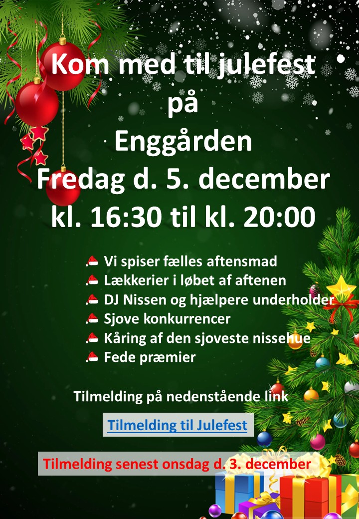 Kom med til julefest på Enggården Fredag d. 5. december kl. 16:30 til kl. 20:00