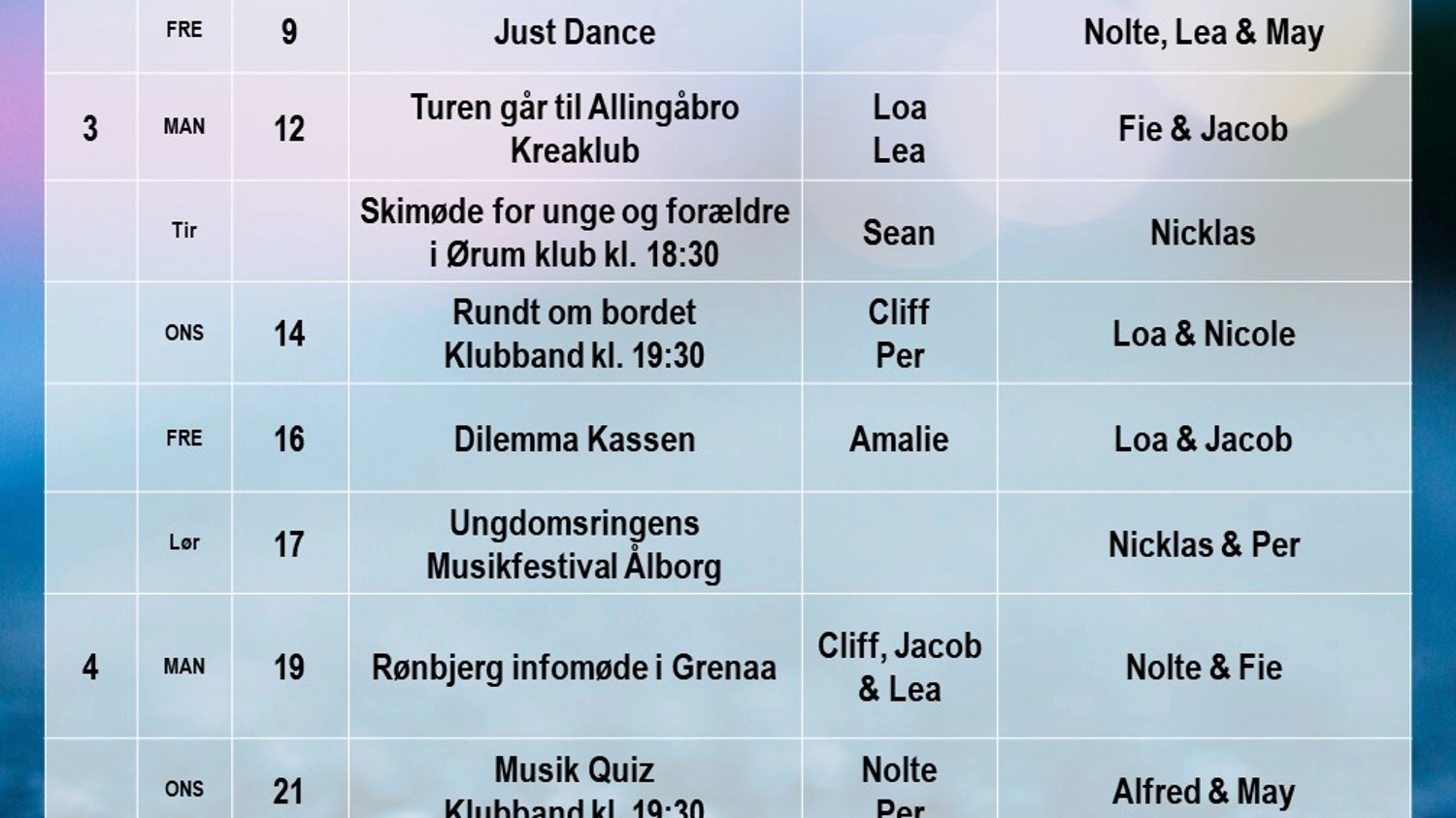 Køreplan Ørum klub